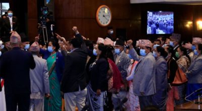 काठमाडौं, २३ भदौ । प्रमुख प्रतिपक्षी नेकपा (एमाले) का सांसदहरूले प्रतिनिधि सभा बैठकमा नाराबाजी गरेपछि