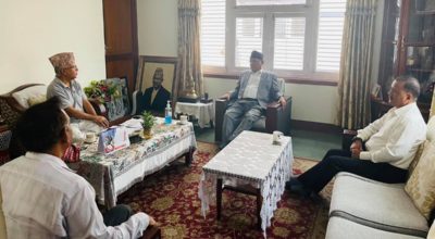 काठमाडौं । नेकपा एमालेका वरिष्ठ नेता माधवकुमार नेपालको कोटेश्वरस्थित निवासमा नेकपा माओवादी केन्द्रका अध्यक्ष पुष्पकमल