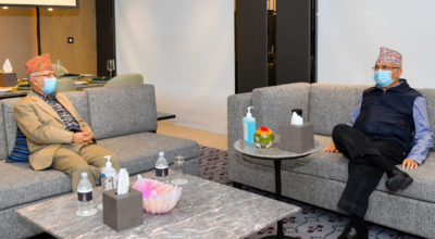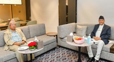 काठमाडौं । एमाले अध्यक्ष तथा प्रधानमन्त्री केपी शर्मा ओली र वरिष्ठ नेता माधवकुमार नेपालबीच काठमाडौंको