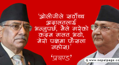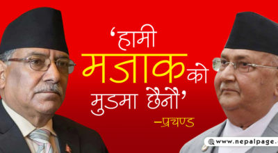 काठमाडौं । नेपाल कम्युनिष्ट पार्टी (नेकपा)का अध्यक्ष पुष्पकमल दाहाल ‘प्रचण्ड’ ले केपी शर्मा ओलीले ताण्डप