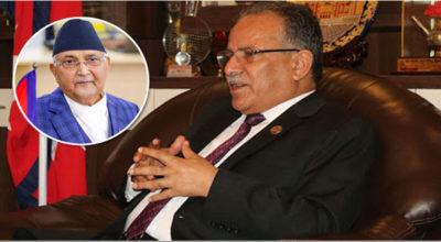 काठमाडौं, १६ साउन । नेपाल कम्युनिस्ट पार्टी (नेकपा)का अध्यक्ष पुष्पकमल दाहाल प्रचण्डले नेकपाका अर्का अध्यक्ष