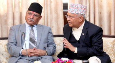 काठमाडौं, १९ असार । नेपाल कम्युनिष्ट पार्टी (नेकपा)का अध्यक्षद्वय केपी शर्मा ओली र पुष्पकमल दाहाल