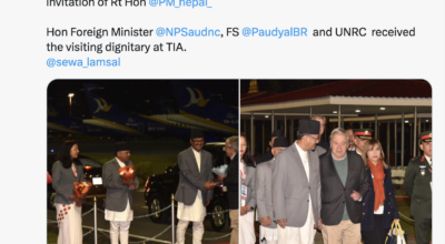 Kathmandu: United Nations Secretary-General Guterres has arrived in Nepal for a 4-day visit. He arrived
