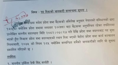 जनकपुरधाम २५ कात्तिक, । मधेश प्रदेश सरकार गठनविरुद्ध ७ राजनीतिक दलका सांसदहरूले मधेश प्रदेश सभा