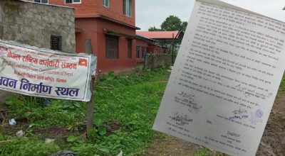 चितवन । नेकपा (माओवादी केन्द्र) निकटको नेपाल राष्ट्रिय कर्मचारी संगठनले सरकारी जग्गा हडपेर भवन निर्माण