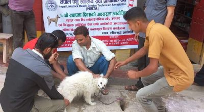 अर्घाखाँची । सन्धिखर्कमा छाडा छोडिएका कुकुरलाई रेविजविरुद्धको निःशुल्क खोप लगाइएको छ । नेपाल पशु स्वास्थ