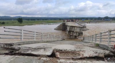 उदयपुर । उदयपुरको चौदण्डीगढी नगरपालिकास्थित त्रियुगा नदीमा निर्माणाधीन शिवाई पुल भाँचिएको एक वर्षदेखि अलपत्र छ