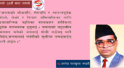 काठमाडौं, १३ असार । नेपाली कम्युनिष्ट आन्दोलनको एक शिर्षस्थ हस्ती मदन भण्डारीले प्रतिपादन गरेको जनताको