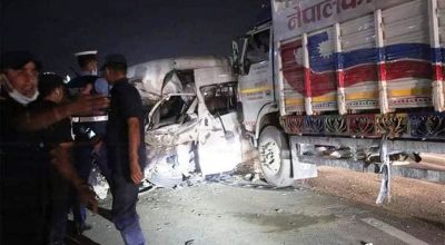 काठमाडौं, १३ असार । कोटेश्वरमा सोमबार साँझ ठूलाे सवारी दुर्घटना भएको छ । दुर्घटनामा एक