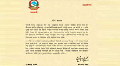 काठमाडौं, २३ वैशाख । कोरोना रोकथाम तथा नियन्त्रण उच्चस्तरिय समन्वय समितिले लक डाउनको अवधि थपिन